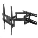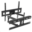 Levný ale kvalitní otočný, sklopný a délkově nastavitelný držák na televize 26-55" Držák robustní a velmi pevné konstrukce, který Vás mile překvapí svou nízkou cenou, která ale nebyla na úkor kvality. Držák má nosnost 30kg a podporuje VESA standardy 100x100 až 400x400. Je ideální pro bezpečné a spolehlivé zavěšení televizorů s úhlopříčkou 26-55" na zeď. Se zavěšenou televizí můžete otáčet na obě strany, naklápět ji nahoru nebo dole a měnit její vzdálenost od zdi - přisouvat, odsunovat, což je ideální v případě zapojování kabeláže nebo při utírání prachu. Kdykoliv máte přístup k zadní straně televize nebo k jejím bokům, což u sklopných nebo fixních držáků nelze a televizi musíte vždy sundat ze stěny. Držák má ocelovou konstrukci, která je robustní a bezpečná, barevné provedení je černé. V balení kromě samotného držáku naleznete i instalační sadu. Levný držák na televizi LCD LED plazmovou 3D nebo prohnutou, doporučená úhlopříčka 26-55 palců. Bezpečné zavěšení televize na stěnu, můžete s ní otáčet na obě strany, naklápět ji nahoru nebo dole a odsunovat nebo přisunovat ke zdi. Fiber Mounts DELTA760 / drzakyastolky.cz Technické údaje: nosnost 30kg podporuje VESA standardy 100x100 až 400x400 ideální pro zavěšení televizí a monitorů s úhlopříčkou 26-55" otáčení na obě strany +/- 75° náklon obrazovky nahoru nebo dole +/- 15° nastavení vzdálenosti od zdi 70-460mm pevná ocelová konstrukce spolehlivé a bezpečné zavěšení televizoru na zeď barva černá záruka 2 roky Držák Fiber Mounts DELTA760 podporuje VESA standardy: VESA 100x100 VESA 200x100 a 100x200 VESA 200x200 VESA 300x100 a 100x300 VESA 300x200 a 200x300 VESA 300x300 VESA 400x200 VESA 400x300 VESA 400x400 Nástěnný levný držák Fiber Mounts DELTA760 je ideální pro zavěšení všech typů a velikostí televizorů nebo monitorů, které mají hmotnost do 30kg a které podporují některý z výše uvedených VESA standardů..
