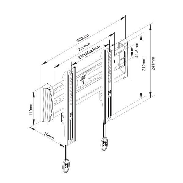Profesionální fixní držák na LCD LED plazma Tv a monitory 17-43", VESA 75x75 až 200x200, vzdálenost od zdi 29mm, nosnost 18kg, automatické zajištění Tv na držáku.Více