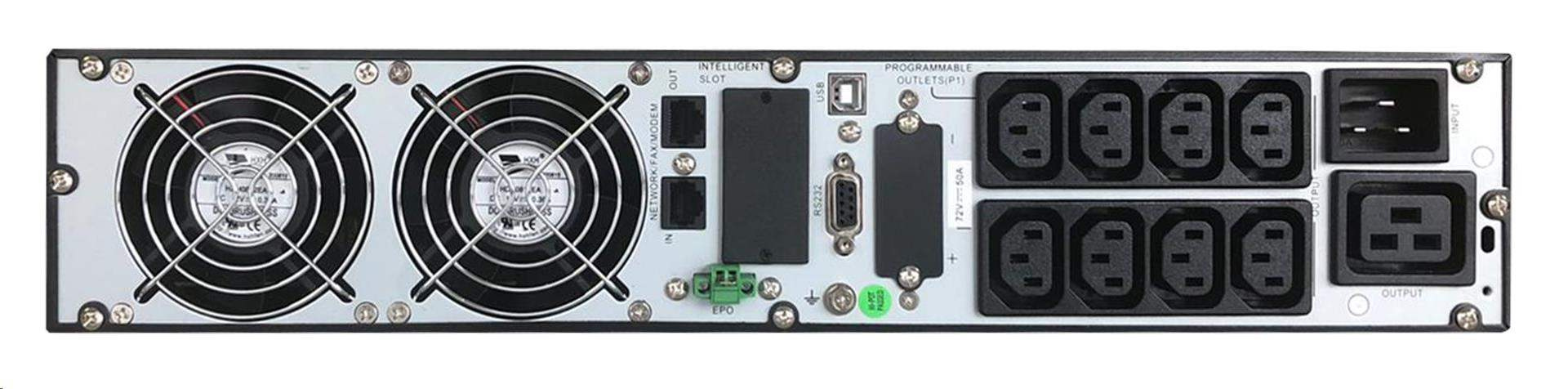 Počet výstupních zásuvek:9; Použití:Server; Provedení:Tower/Rack; Zdánlivý výkon VA:2000; Výška v Racku:2U; Topologie:On-Line; Fáze (Vstup/Výstup):1:1; Komunikace:USB, RS232; Možnosti:EPO konektor; Typ výstupu:IEC 13, IEC 19; Ochrana telefonní sítě; Ochrana datové sítě.Více