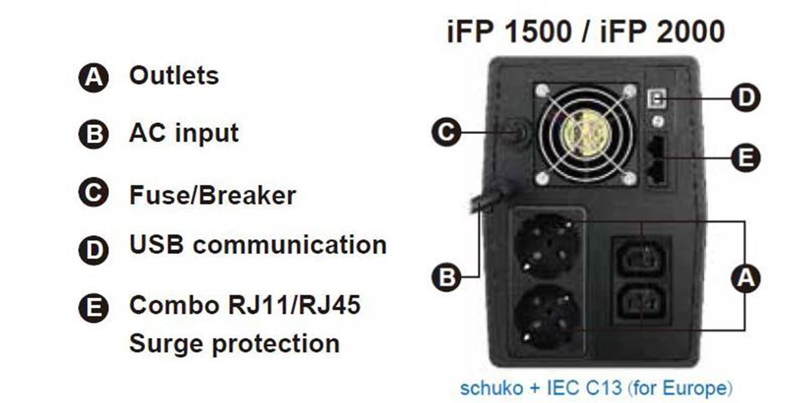 Popis Fortron UPS FSP iFP 2000, 2000 VA / 1200W, LCD, line interactive