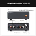 Připojení probíhá přes klasické RCA vstupy a výstupy. Pevné kovové šasi eliminuje elektromagnetické rušení, chrání citlivou elektroniku a zajišťuje stabilitu při delším poslechu. Díky kompaktním rozměrům se snadno začlení i do menších HiFi sestav.