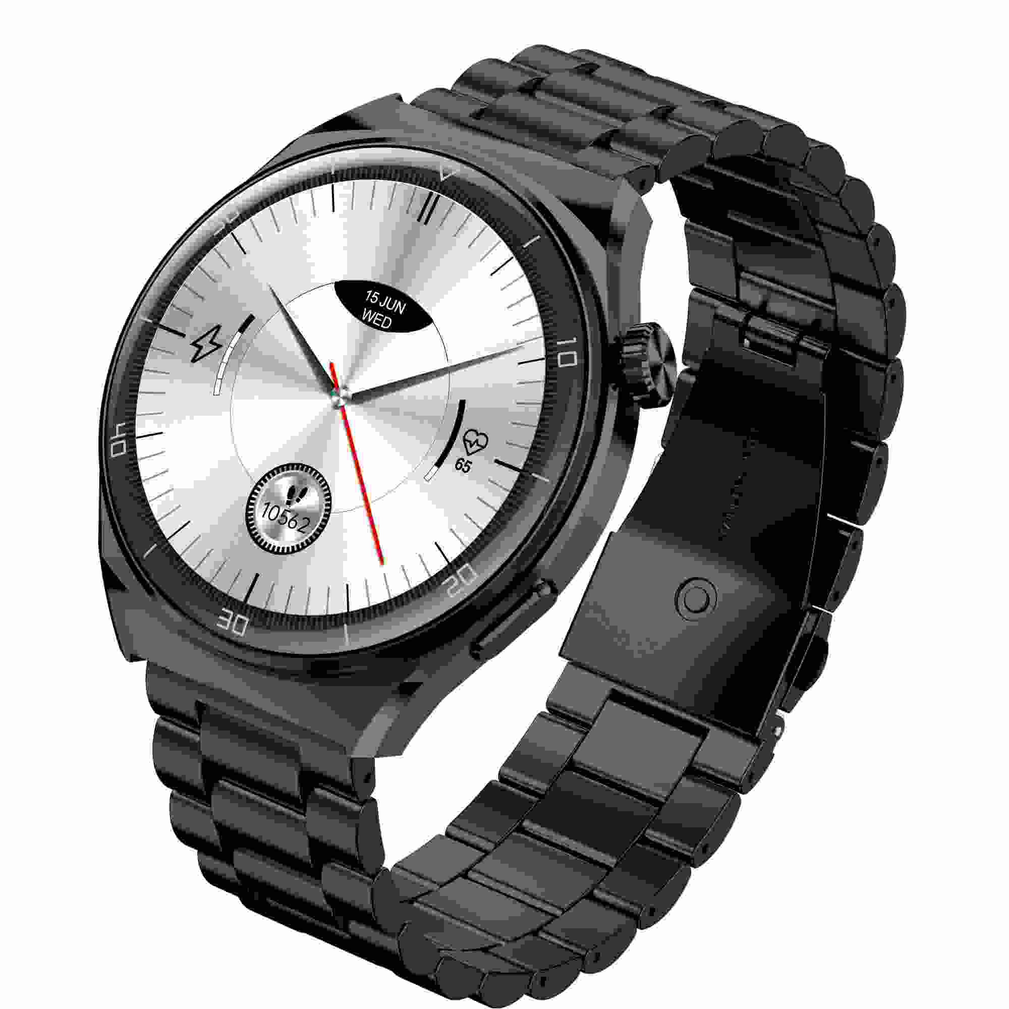 Hodinkové funkce:24hodinový režim, Budík, Časovač, Datum, Den v týdnu, Stopky; Chytré funkce:Ovládání přehrávače hudby v mobilu; Jazyk rozhraní:Čeština, Polština, Angličtina, Slovenština, Maďarština, Jiné; Kompatibilní OS:Android, iOS; Konektivita:Bluetooth; Materiál pouzdra:Ocel; Materiál řemínku:Kůže; Notifikace a zprávy:Notifikace z telefonu.Více