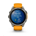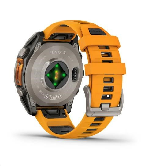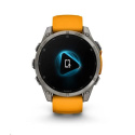 Popis Garmin fenix® 8 – 47 mm, AMOLED, Sapphire, Titanium s Orange/Graphite silikonovým řemínkem, EU