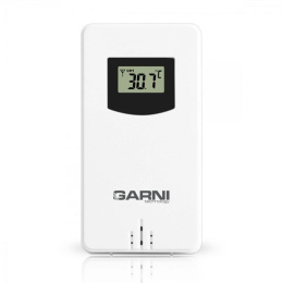 Bezdrátové čidlo pro měření teploty, určeno pro meteorologickou stanici GARNI 365 Arcus vlhkosti odolné, krytí IPX4 (odolné proti stříkající vodě) displej o rozměrech 19 x 11 mm velikost číslic na displeji: teplota 6,5 mm měření teploty 3 kanály maximální RF výkon 10 dBm (10 mW) možnost postavení a zavěšení barva bílá.
