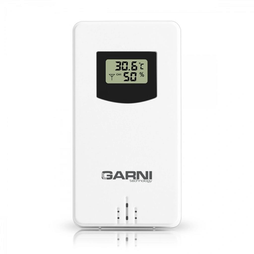 Bezdrátové čidlo pro měření teploty a relativní vlhkosti, určeno pro meteorologické stanice GARNI 439 Line, GARNI 545 Line vlhkosti odolné, krytí IPX4 (odolné proti stříkající vodě) displej o rozměrech 19 x 11 mm velikost číslic na displeji: teplota a relativní vlhkost 4 mm měření teploty a relativní vlhkosti 3 kanály maximální RF výkon 10 dBm (10 mW) možnost postavení a zavěšení barva bílá.