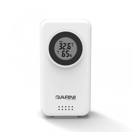 Bezdrátové čidlo pro měření teploty a relativní vlhkosti, určeno pro meteorologické stanice GARNI 550 EASY, GARNI 560 EASY, GARNI 560 EASY II, GARNI 570 EASY, GARNI 570 EASY II - vlhkosti odolné, krytí IP44 (odolné proti stříkající vodě) - kruhový displej o průměru 19 mm - velikost číslic na displeji: teplota a relativní vlhkost 5 mm - měření teploty a relativní vlhkosti - 3 kanály - maximální RF výkon 10 dBm (10 mW) - možnost postavení.