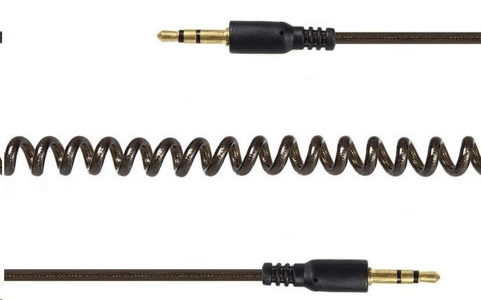 Spiral audio cable with two gold plated 3.5 mm stereo connectors Connectors: 2 x 3.5 mm (male) Gold-plating: yes Length: 1.8 m Diameter: 3 mm Net weight: 55 g