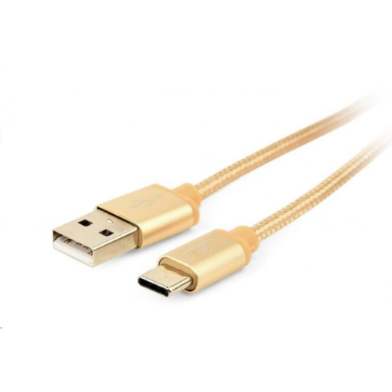 Cotton braided Type-C USB cable with metal connectors, 1.8 m, gold color, blister
