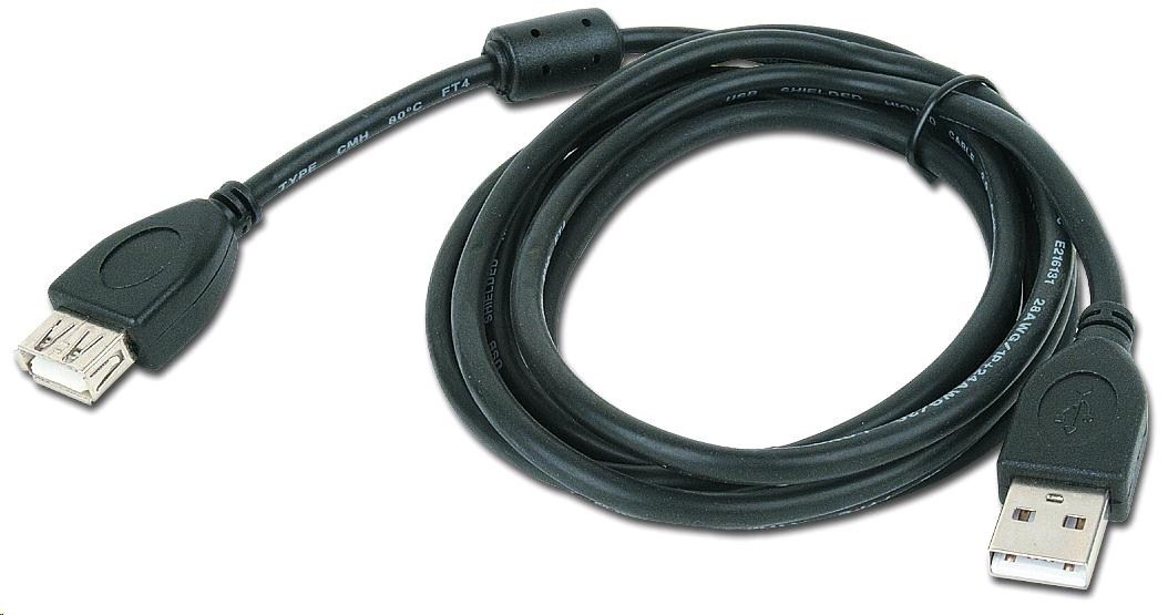 GEMBIRD Kabel USB 2.0 A-A prodlužovací 1,8m Premium (černý, ferit, zlacené kontakty)