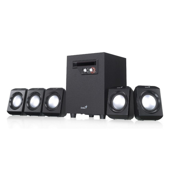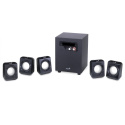Elegantní systém reproduktorů v konfiguraci 5.1 nabízí celkový výkon 26 W. Sestava je tvořena kvalitním subwooferem s 4" driverem, který disponuje výkonem 14,5 W RMS a stará se o věrné a plné basové tóny. Subwoofer je doplněn pěti satelity, kdy každý disponuje výkonem 2,3 W RMS. Ovládání hlasitosti i basů se nachází na přední straně subwooferu. Součástí balení je napájecí adaptér 100-240 V.