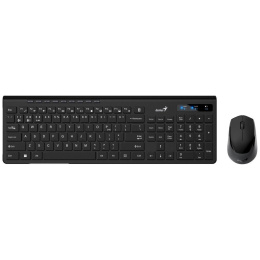 Kvalitní set klávesnice a myši pokryje všechny vaše základní kancelářské potřeby. Klávesnice disponuje řadou multimediálních kláves, které lze využít pro snadnější ovládání hudebního přehrávače, sociálních sítí či kancelářských programů. Myš je vybavena optickým senzorem s rozlišením snímače 1200 DPI, které zaručí hladké a přesné ovládání. Set umožňuje pracovat až na třech zařízeních současně. Připojení je realizováno bezdrátově skrze Bluetooth či miniaturní USB přijímač a technologii 2,4 GHz.