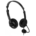 Lehká náhlavní souprava se skvělým zvukem. Disponuje ovládáním přímo na kabelu a nastavitelným mikrofonem. Připojení je realizováno skrze USB konektor.