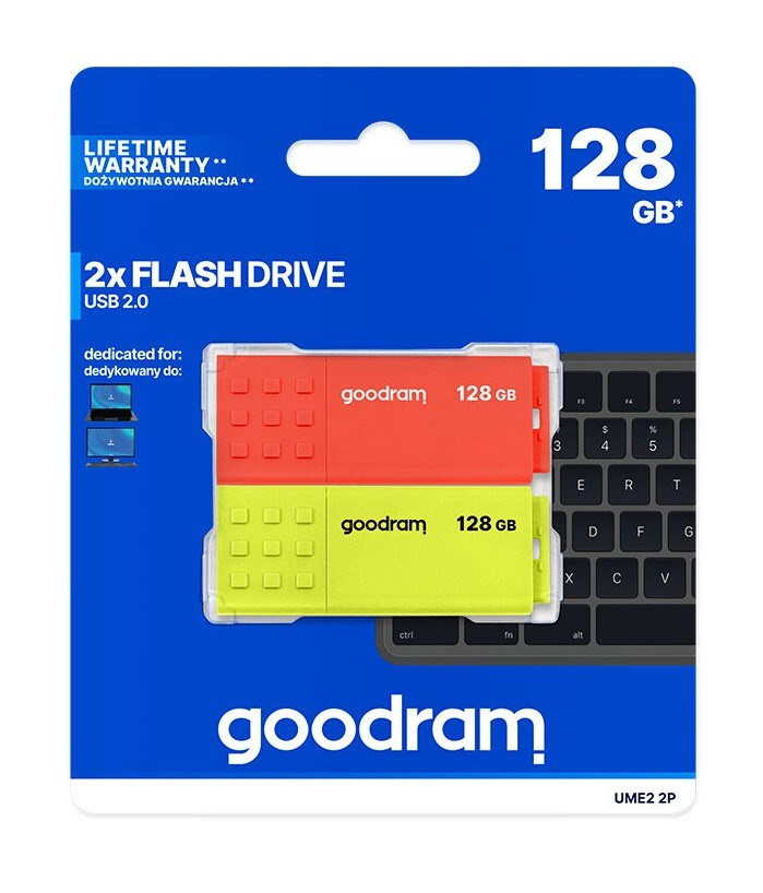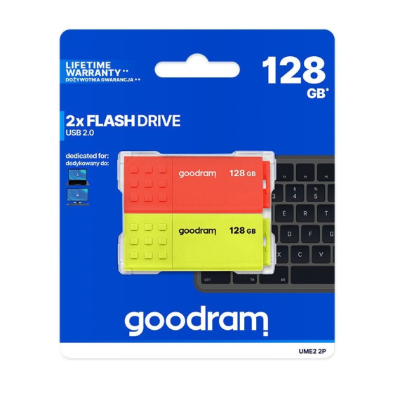 UME2 kombinuje klasický design s barevným pouzdrem. Zátka s vypouklým protiskluzovým designem usnadňuje otevření USB za každé situace. Zátka může být umístěna na druhém konci pouzdra, čímž je zajištěno, že se neztratí. Pouzdro je vybaveno perforací pro připevnění visačky na zavěšení, takže můžete mít paměťovou kartu vždy u sebe. Paměťová karta je k dispozici v sadě dvou USB médií s kapacitou od 2 x 16 GB do 2 x 128 GB.