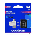 GOODRAM M1A4 All in One poskytuje všestrannost tím, že poskytuje funkčnost několika zařízení v jednom řešení. Jedná se o čtečku karet vybavenou konektory USB 2.0 a micro USB, umožňující snadný přenos dat mezi počítači, smartphony, tablety a fotoaparáty. Dodává se s rychlou UHS-I microSD kartou.