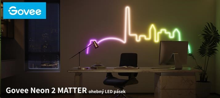 Govee přináší 2. generaci svých neonových pásků. Připravte se na řadu zásadních zlepšení. Vaše gamingové, pracovní nebo relaxační prostředí dostane novou dávku energie s Govee Neon 2. Tyto designové pásky, jsou nyní měkčí, takže tvarování je snadnější. Hotové tvary lze s pomocí přiloženého materiálu umístit na libovolný povrch a s pomocí aplikace a fotoaparátu si tvar do aplikace přenést. Na vytvořený vzor můžete namapovat 16,4 mil. barev a aplikovat množství efektů. 3m pásek se skládá ze 252 diod, což dává hustotu 84 LED/m. Příkon pásku je 36 W při plném výkonu a životnost je 50.000 hodin. Díky technologii RGBIC lze pásku přiřadit až 57 barev najednou v intenzitě 1-100 %. Pro zákazníky, kteří upřednostní přednastavené režimy pásek nabízí 64 světelných scén a 12 způsobů vizualizace hudby. Vybere si každý. Neon 2 se ovládají aplikací a je možné využít i asistenty, Google, Alexa a Siri. Zcela nově pásky podporují protokol Matter, takže integrace do většiny Smart Home prostředí je otázka několika vteřin. Instalace pásků se provádí pomocí přiložených klipů, vybavených silnou, oboustrannou 3M páskou, bez vrtání. K instalaci je nutný pevný povrch, při upevnění na omítku nelze pevnost spojení garantovat.