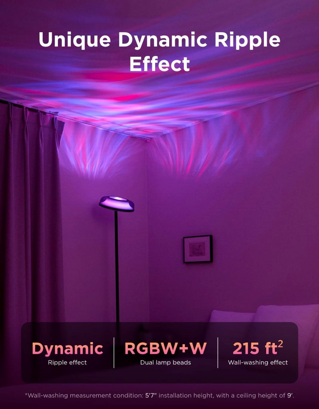Horní část lampy je vybavena vlnkovým projekčním efektem, který proměňuje stěny a stropy v pohyblivé světelné vzory. Efekt je dynamický a plynulý, takže každý večer působí jako mini světelná show. Ideální pro relaxaci, večírky nebo jednoduše pro wow efekt v každém pokoji.