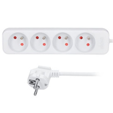 Výstup 4 x 2,5A/230V, vypínač, ochranné dětské pojistky v zásuvkách, barva: bílá.