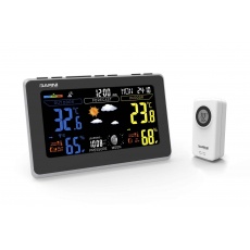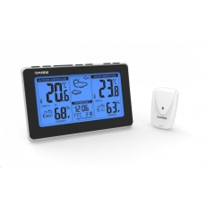Třetí generace meteorologické stanice se špičkovým inverzním barevným VA displejem s časem řízeným rádiovým signálem DCF-77, budíkem, měřením vnitřní teploty, relativní vlhkosti a absolutního barometrického tlaku, bezdrátovým čidlem pro měření vnější teploty a relativní vlhkosti a USB portem pro napájení externích zařízení.