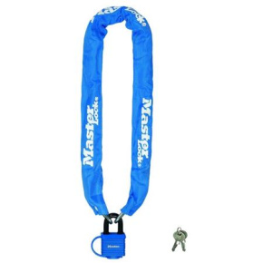 Zpevněný ocelový řetěz s ocelovým visacím zámkem je 90 cm dlouhý a obsahuje ocelové spojky o průměru 6 mm, které odolávají řezání. Nylonový kryt zabraňuje poškrábání. Visací ocelový zámek o průměru 40 mm je odolný proti povětrnostním vlivům. 2 ks klíčů jsou součástí balení. Barva modrá. Cena za kus..