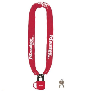 Zpevněný ocelový řetěz s integrovaným kombinovaným zámkem je dlouhý 90cm a obsahuje ocelové spojky o průměru 8 mm, které odolávají řezání. Nylonový kryt zabraňuje poškrábání. Barva černá. Cena za kus..