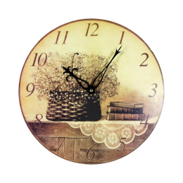 Analogové nástěnné hodiny, čas řízený krystalem, materiál kompozitní dřevo, průměr ciferníku 345 mm, napájení 1 ks baterie typ AA 1,5 V (tužková, není součástí balení), ciferník se vzorem, číslice hnědé.Více