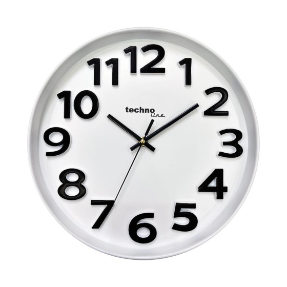 • analogové nástěnné hodiny • čas řízený krystalem • materiál plast • průměr ciferníku 284 mm • napájení na 1 ks baterie typ AA 1,5 V (tužková, není součástí balení) • barva bílá, ciferník bílý, číslice černé.