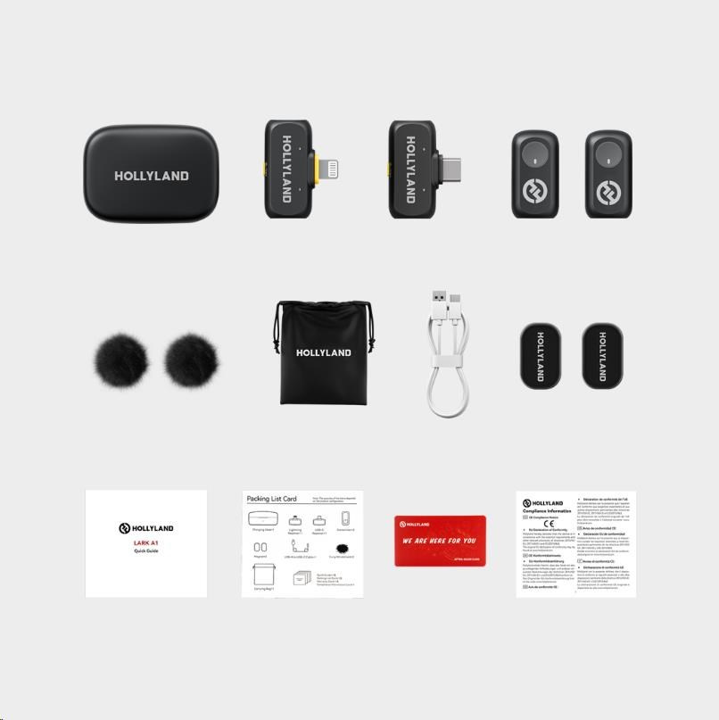 Everything fits into the included carry pouch, and the complete system is compact enough to go in a pocket or small bag. Whether you're creating on your phone or tablet, the LARK A1 Combo is a simple, high-quality upgrade for your audio workflow—no apps, no setup headaches.