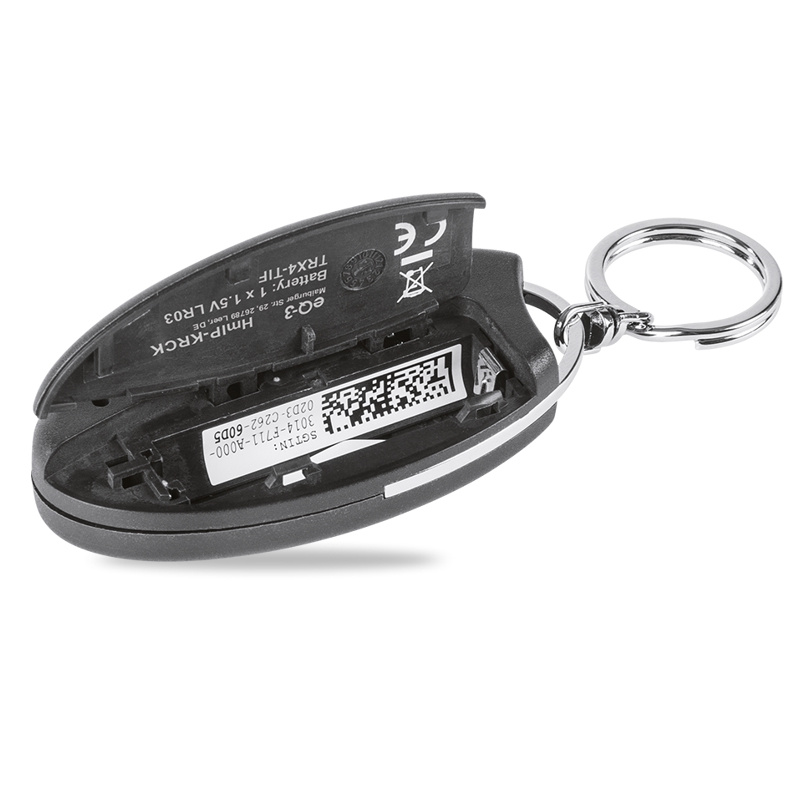 Elegantní bezdrátová klíčenka (HmIP-KRCK) z řady Homematic IP umožňující stisknutím tlačítka jednoduché ovládání bezdrátového inteligentního Pohonu dveřního zámku (HmIP-DLD). Je součástí systému chytré domácnosti Homematic IP a alternativou k aplikaci Homematic IP.