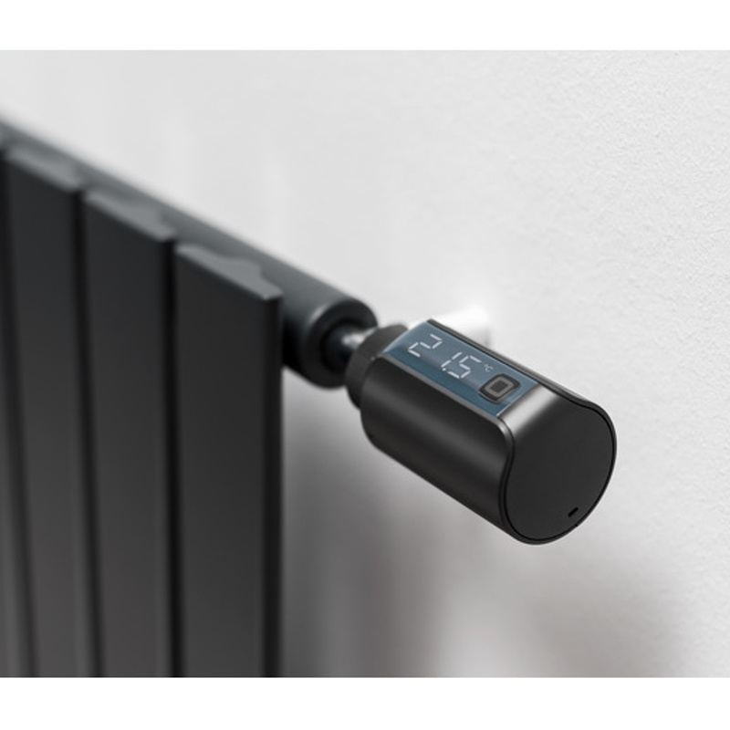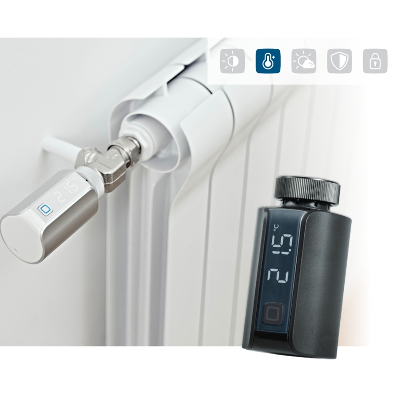 Hlavice Evo bezpochyby zaujme i svým nenápadným integrovaným LED displejem, na kterém lze snadno číst výslednou teplotu a provozní režimy. Bezdrátová programovatelná termostatická hlavice antracitová Evo (HmIP-eTRV-E-A) z řady Homematic IP s podsvíceným LED displejem představuje evoluci pro regulaci vytápění a úsporu energií. Změnu teploty lze měnit manuálně, řídit prostřednictvím některého z nástěnných termostatů Homematic IP nebo vzdáleně ovládat a automatizovat za pomocí mobilní aplikace Homematic IP v kombinaci s Centrální jednotkou (HmIP-HAP).