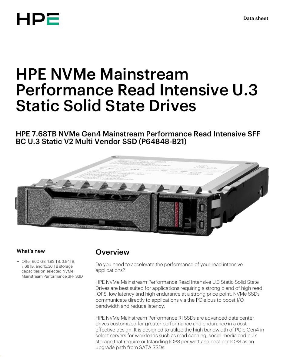 HPE 7.68TB NVMe Gen4 Mainstream Performance Read Intensive SFF BC U.3 Static V2 Multi Vendor SSD