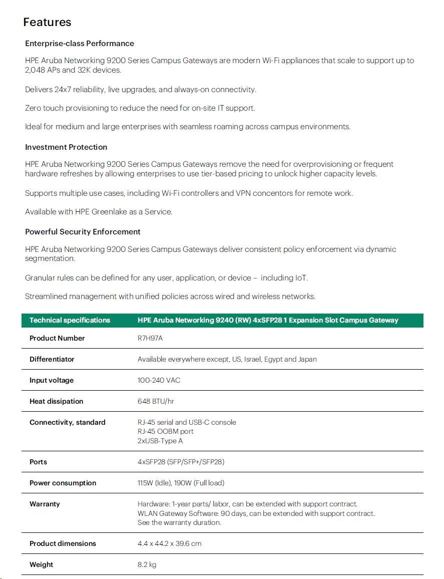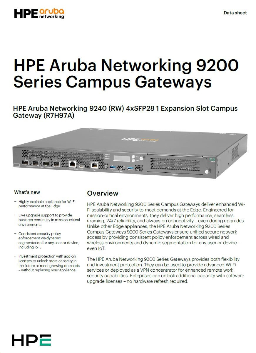 HPE Aruba Networking 9240 (RW) 4xSFP28 1 Expansion Slot Campus Gateway R7H97A RENEW