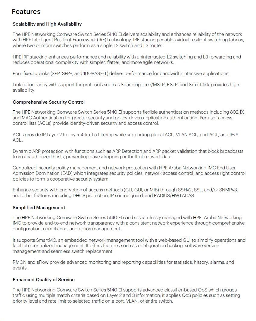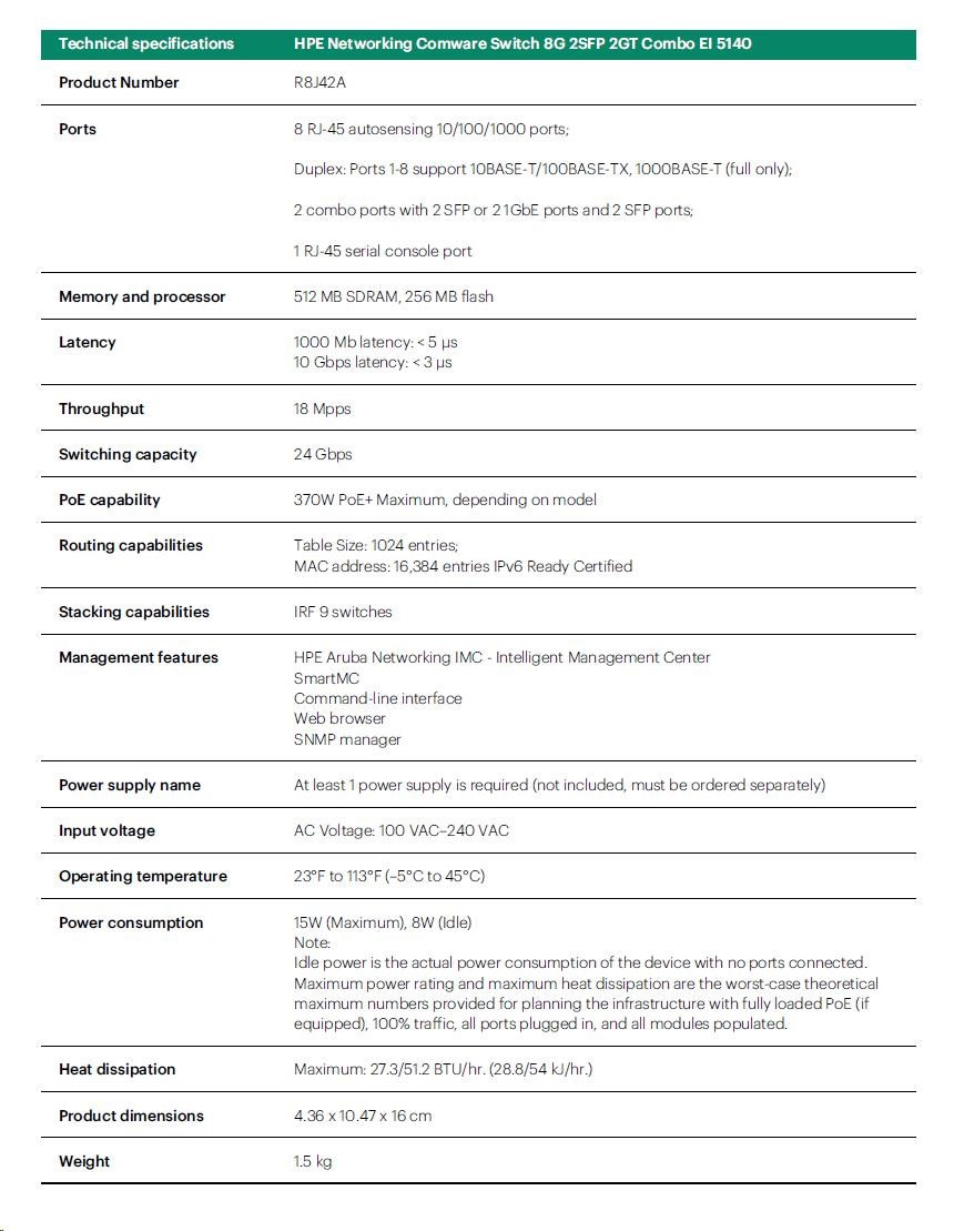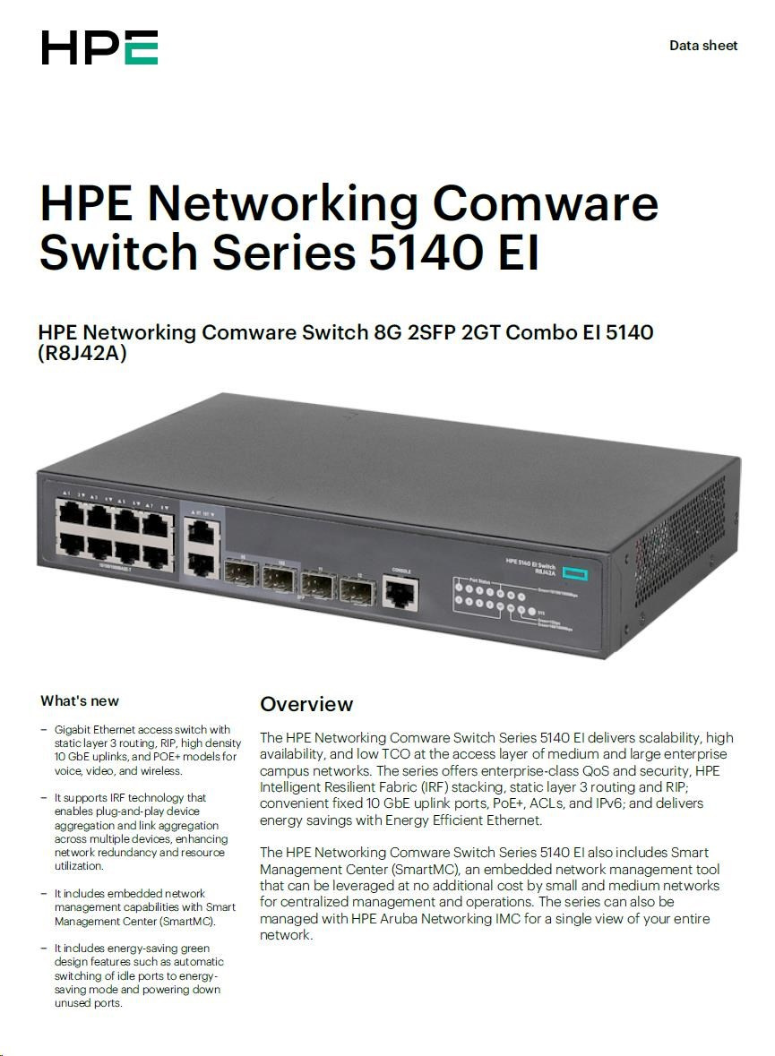 Popis HPE Networking Comware Switch 8G 2SFP 2GT Combo EI 5140 R8J42AR RENEW