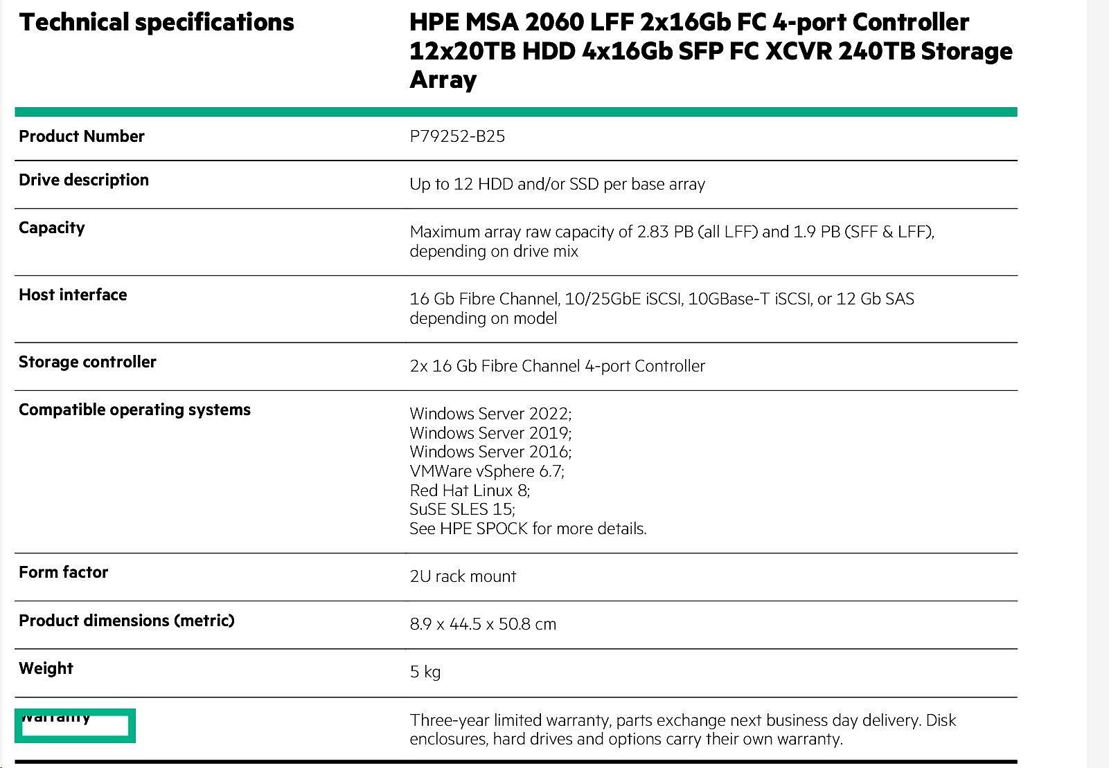 Popis HPE MSA 2060 LFF 2x10/25GbE iSCSI Array