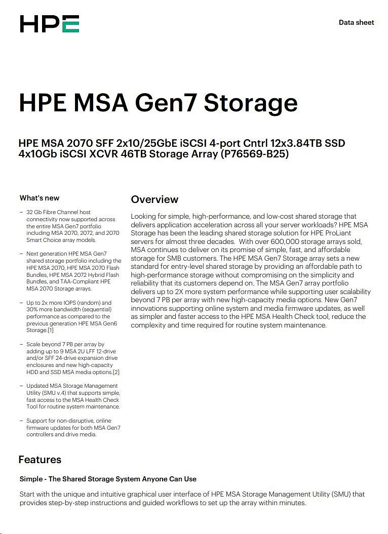 Popis HPE MSA 2060 SFF 2x10/25GbE iSCSI Array