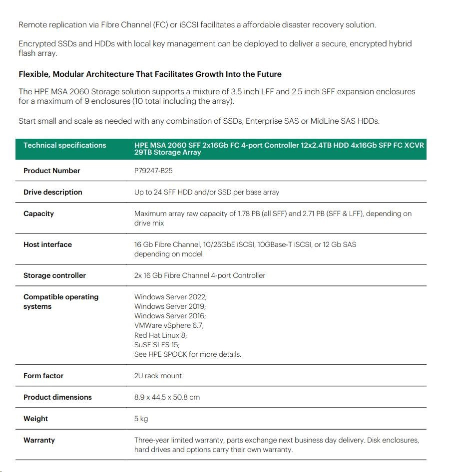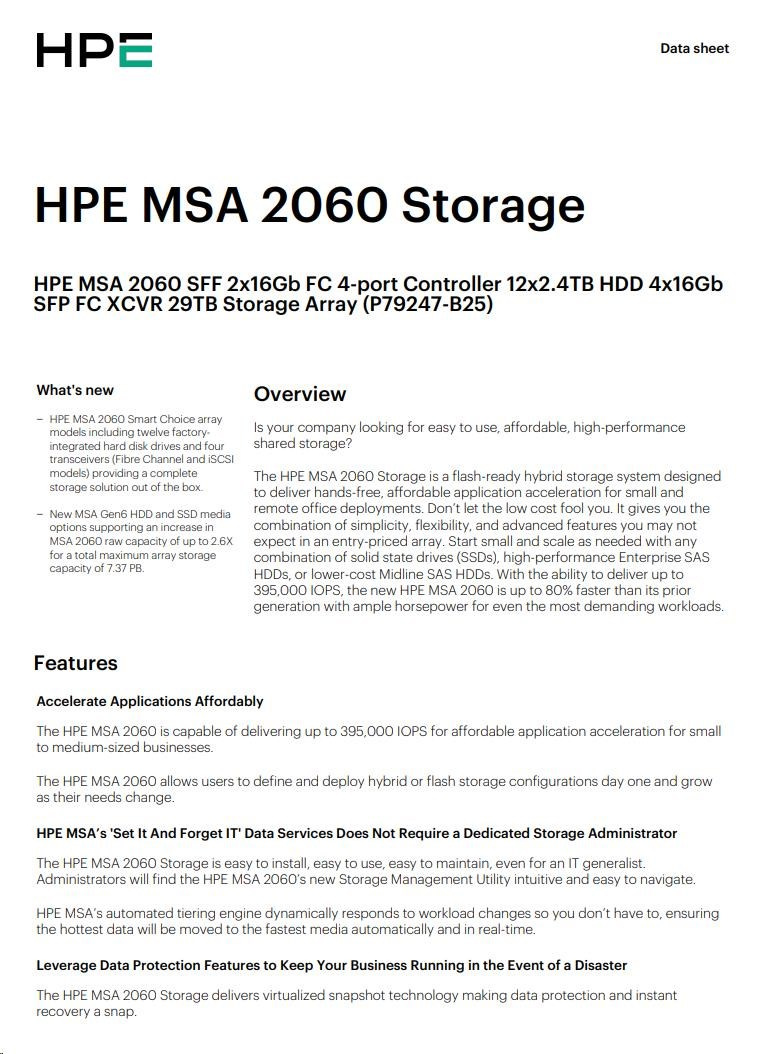 Popis HPE MSA 2060 SFF 2x16Gb FC 4-port Controller 12x2.4TB HDD 4x16Gb SFP FC XCVR 29TB Storage Array Smart Choice