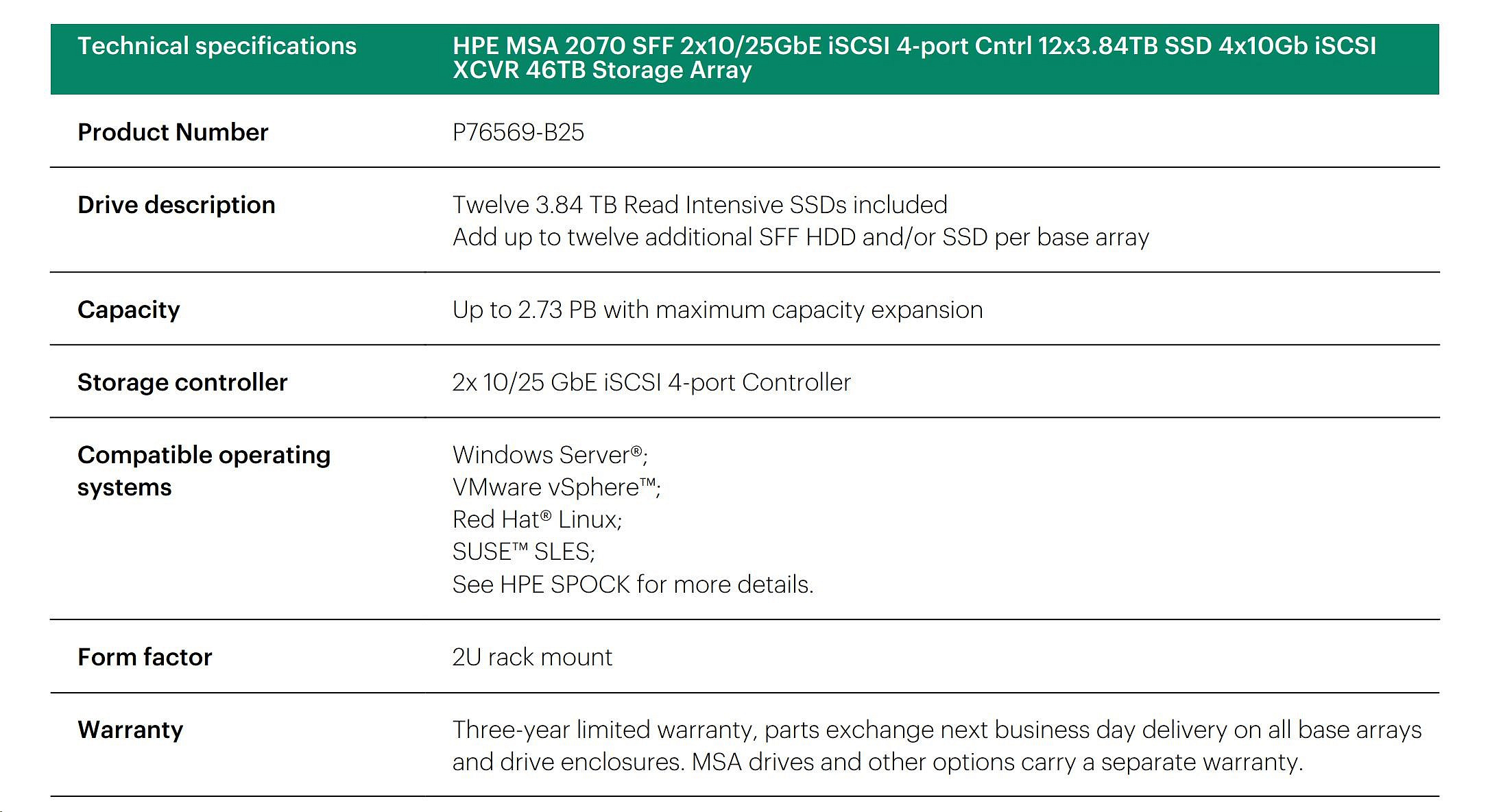 HPE MSA 2070 SFF 2x16Gb FC 4p Array