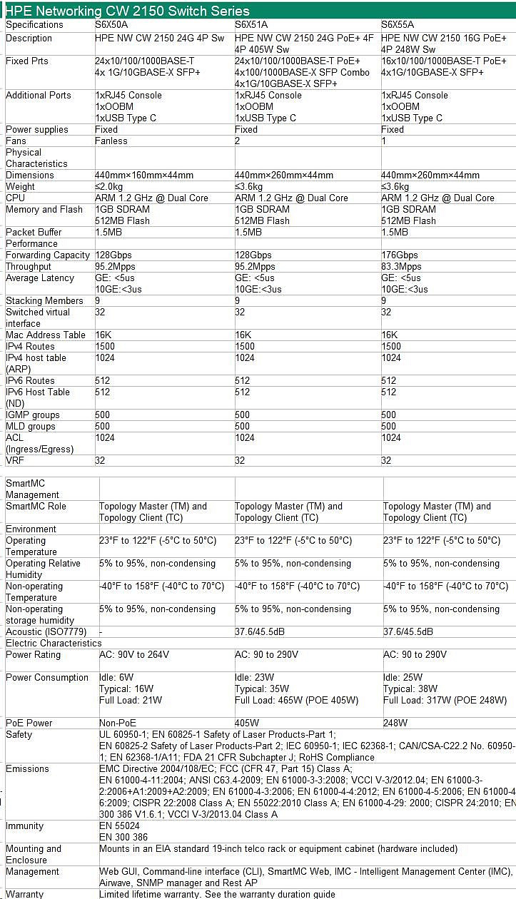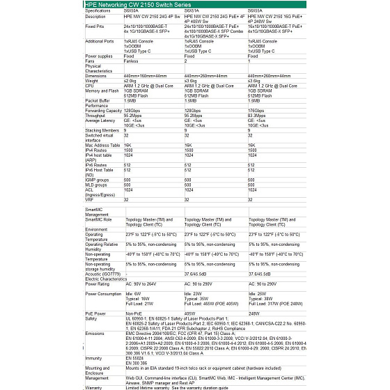 HPE Networking CW 2150 16p 10M/100M/1G PoE+ 4p SFP+ 1G/10G 248W Switch