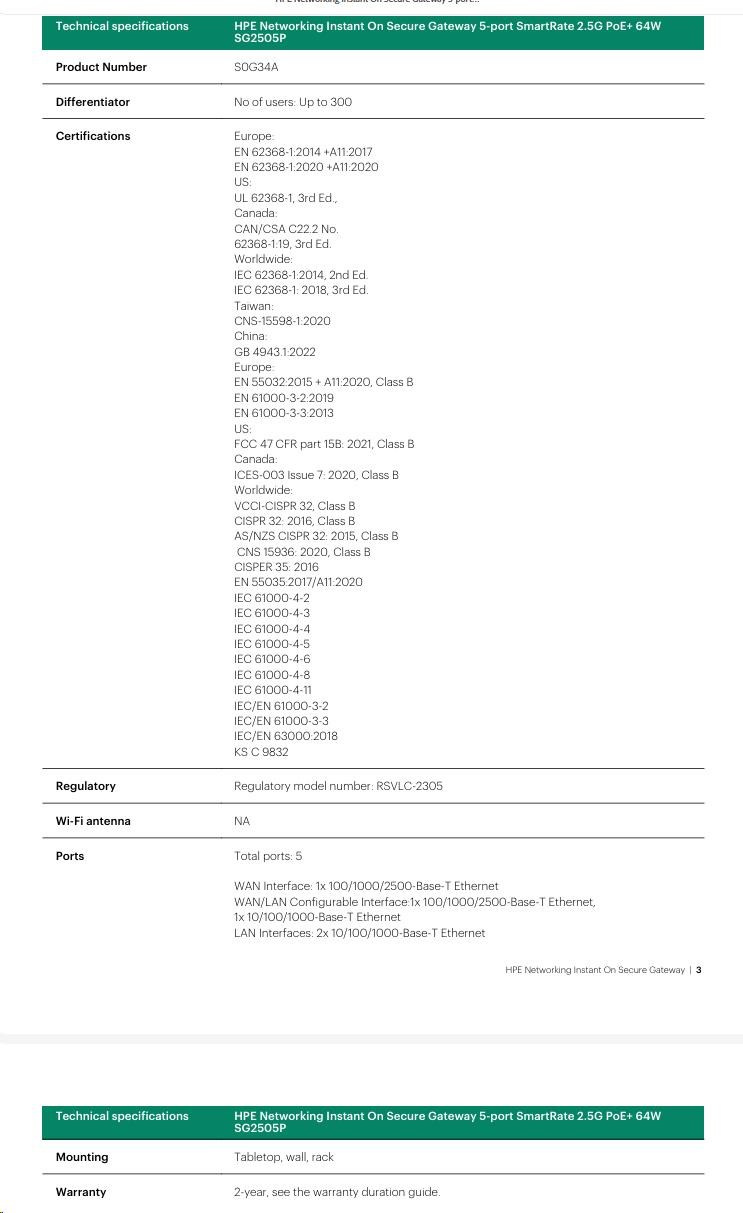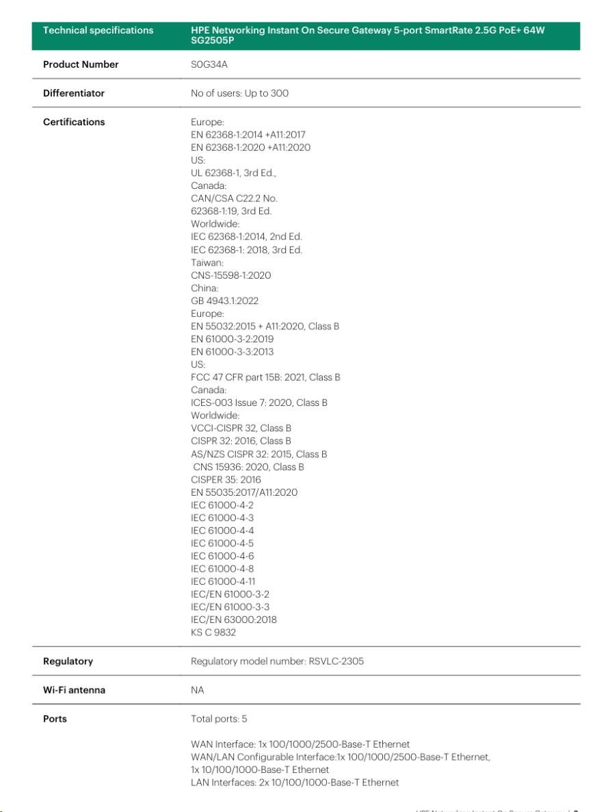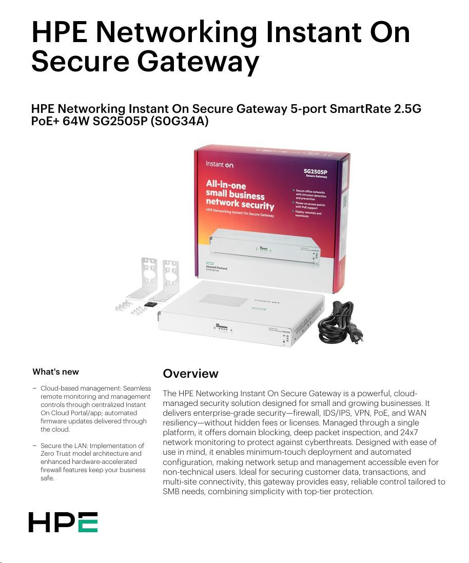 | HPE Networking Instant On Secure Gateway SG1004(S0G33A) | HPE Networking Instant On Secure Gateway SG2505P(S0G34A) |