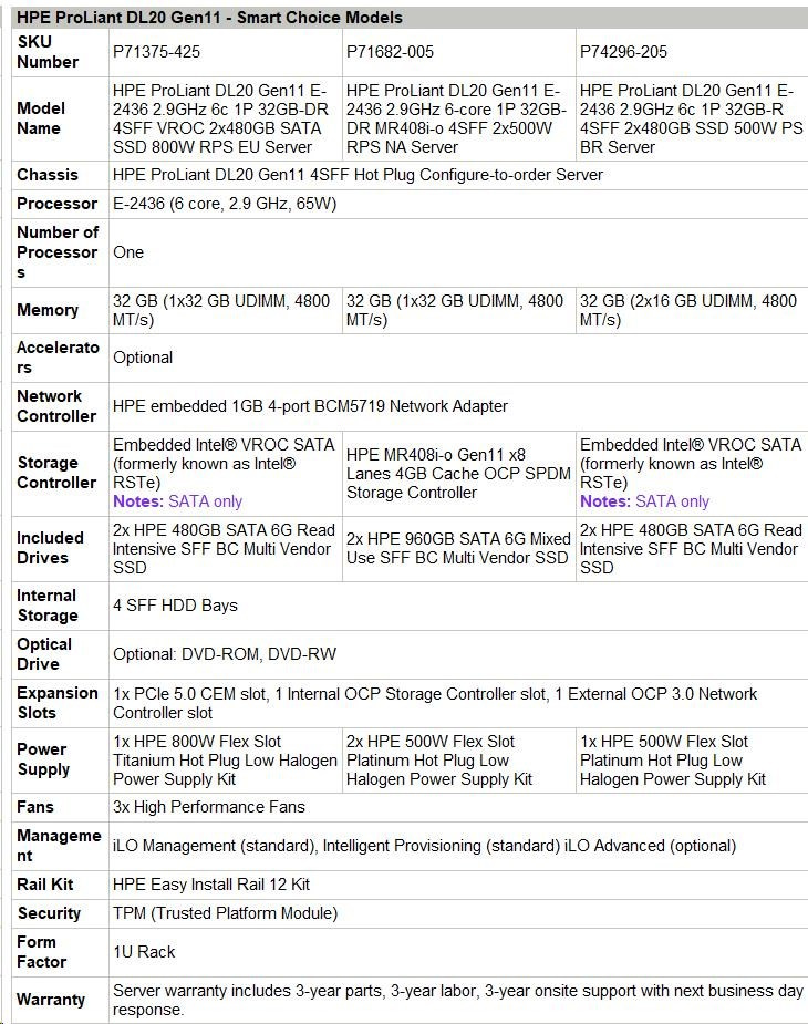 HPE ProLiant DL20 Gen11 - Smart Choice Models