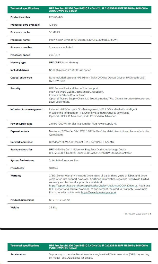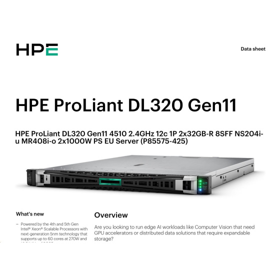 Popis HPE PL DL320g11 4510 (2.4/12C) 2x32G (p64706) NS204(2x480) MR408i-o 8SFF 2x1000W 2p1G Smart Choice