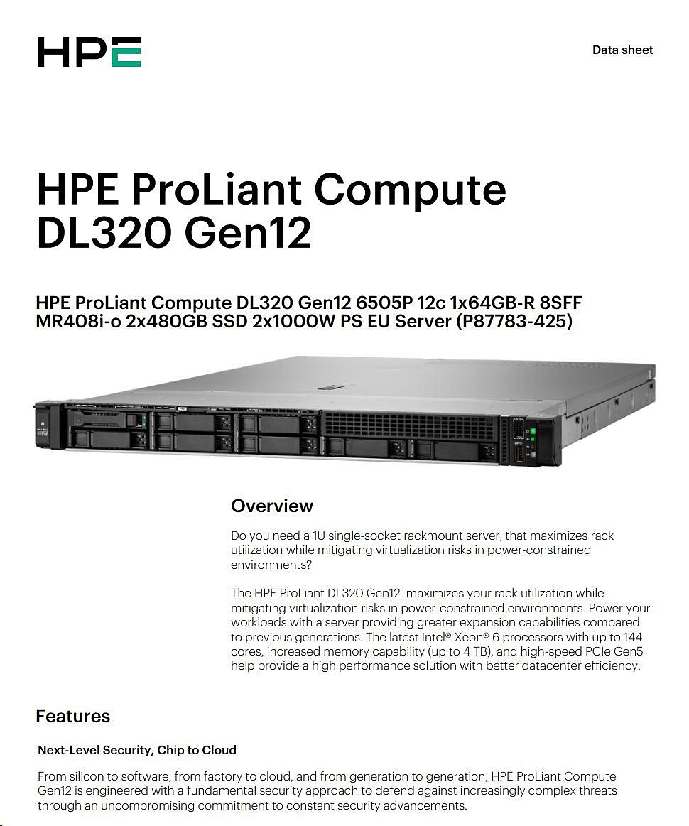 Popis HPE PL DL320g12 6505P (2.2/12C) 4x32G (P69727) MR408i-o 8SFF 2x1000W NBD333 Smart Choice