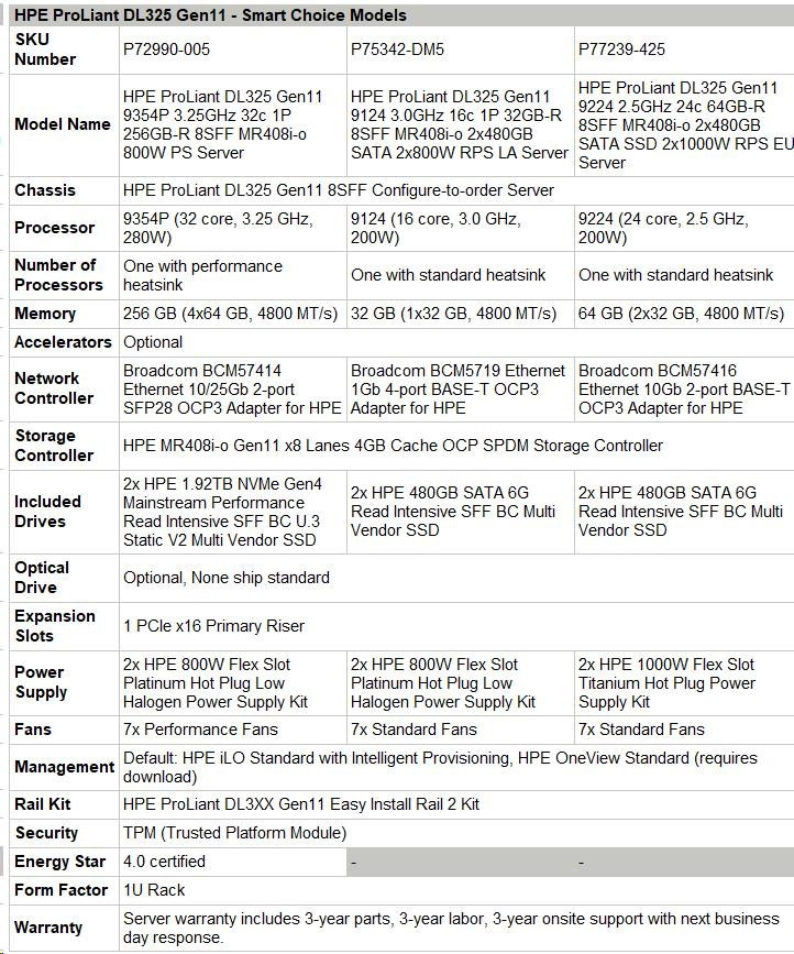 | Chassis | HPE ProLiant DL325 Gen11 8SFF Configure-to-order Server |