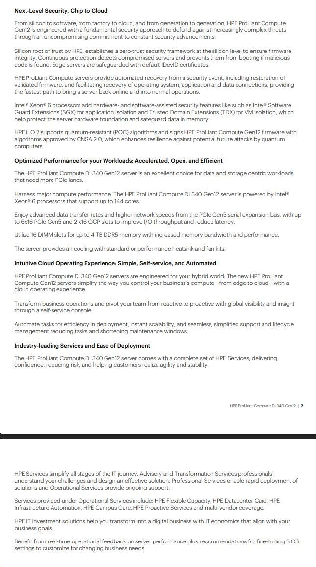 HPE PL DL340 Gen12 6515P (2.4/16C) 1x64G (P69728) NS204(2x480) MR416i-o 8SFF 2x1000W 10GbE NBD333 Smart Choice.