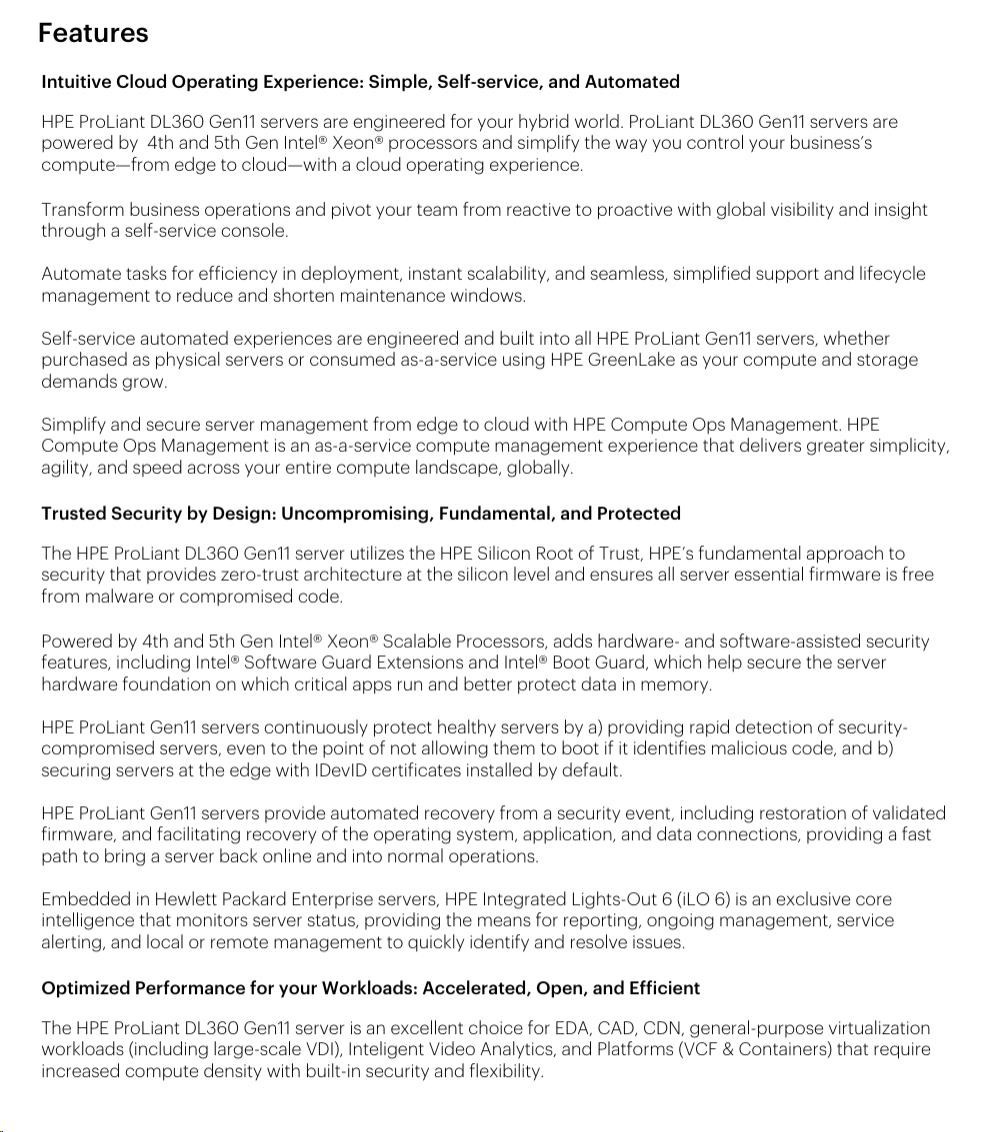 Model Name HPE ProLiant DL360 Gen11 5415+ 2.9GHz 8-core 1P 32GB-R NC 8SFF 800W PS Server