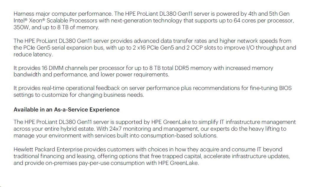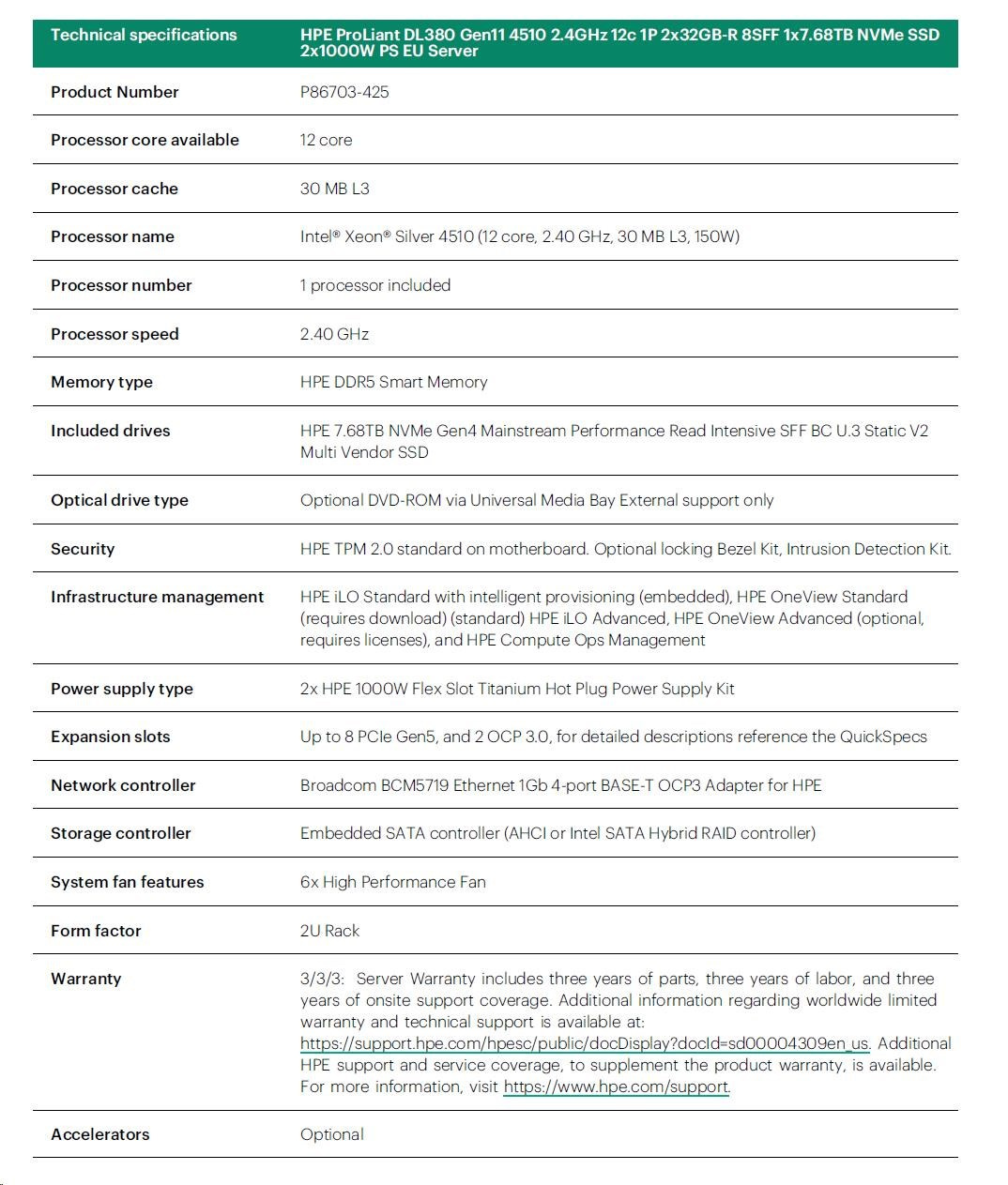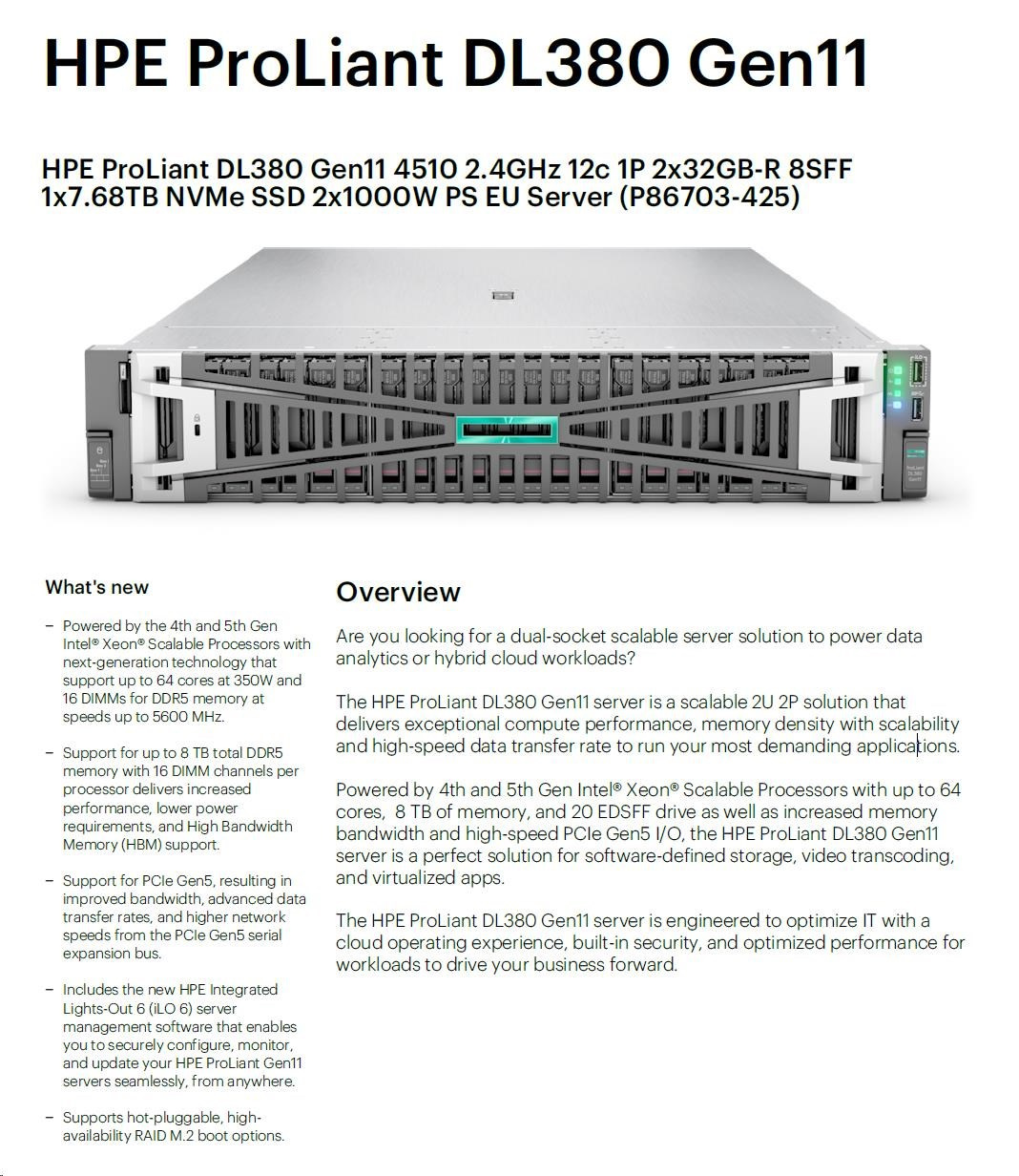Popis HPE PL DL380g11 4510 (2.4G/12C) 2x32G (p64706) 1x7.68TB (P64848) 2x1000W 8SFF VROC 8NVMe(P48825) 4p1G HPF Smart Choice