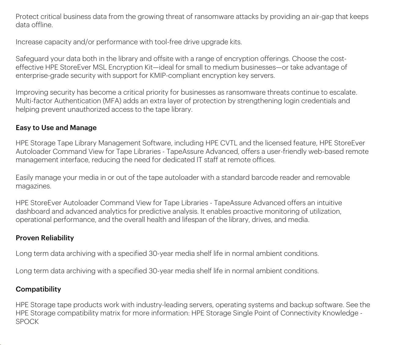 HPE Storage MSL 1/8 Tape Autoloader 1x MSL LTO-8 SAS Drive 5x LTO-8 30TB Data Cartridges.