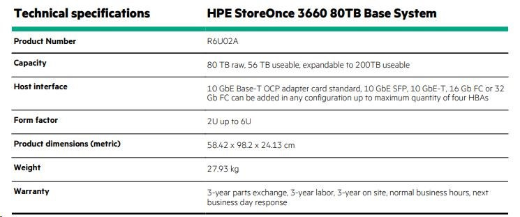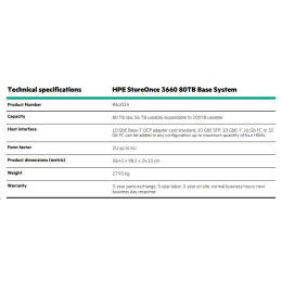 HPE StoreOnce 3660 80TB Base System (2U with10 x 8 TB disks).