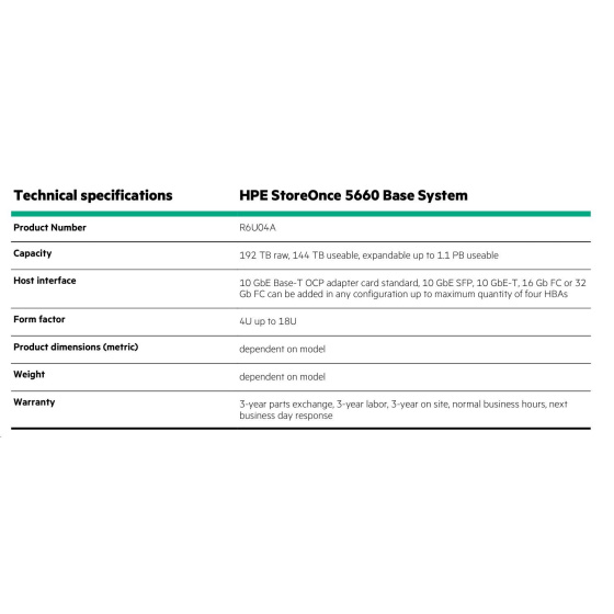 HPE StoreOnce 5660 System with 2 x 1.9TB SSDs for OS and 8 x 6.4 TB SSD disks for Data Cache