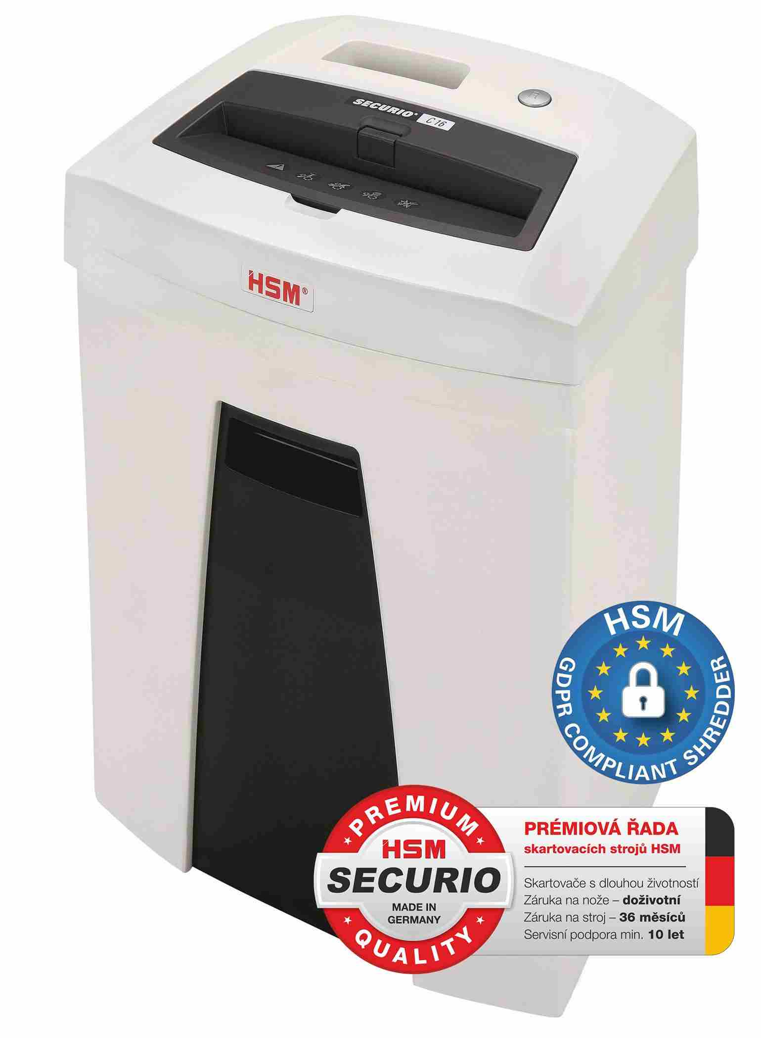 HSM skartovač Securio C16 (řez: Kombinovaný 4x25mm | vstup: 225mm | DIN: P-4 (3) | papír, sponky, plast. karty )