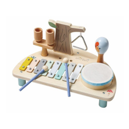Dřevěný hudební stoleček se sadou 5 hudebních nástrojů pro děti, s motivem lesní říše, rozzáří očka každému dítku a probudí v něm lásku k hudbě. Hudební stoleček v jemných pastelových barvách obsahuje základní dětské hudební nástroje, které stimulují smysly, zdokonalují jemnou motoriku, seznámí děti s tím, jaké zvuky který nástroj vydává, jak se na něj hraje..